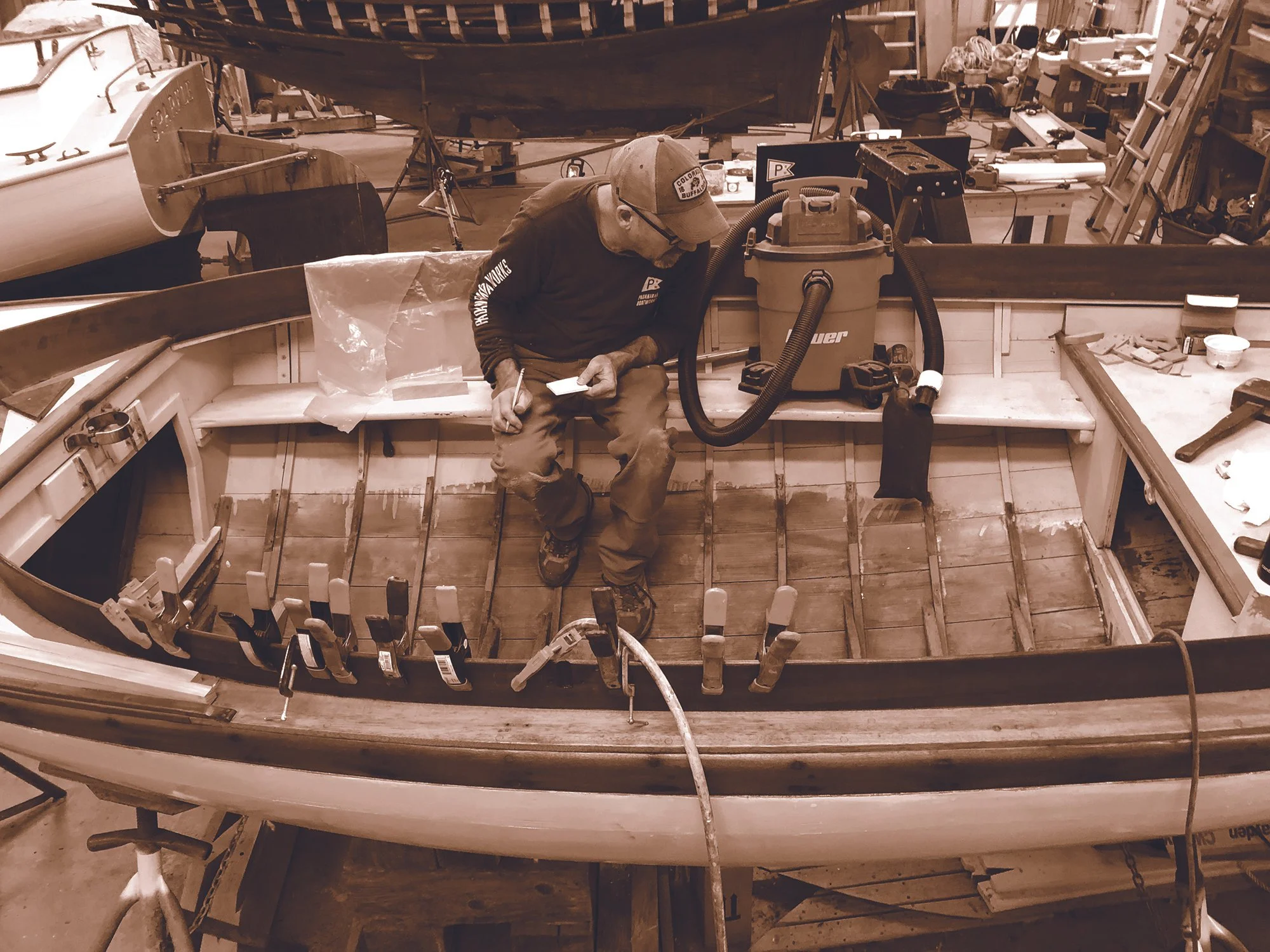We have experience in all types of wooden boat construction, including plank-on-frame, lapstrake, cold-molding and others. Being well-versed in all types of marine carpentry and joinery, we also perform interior cabinetry and wooden trim work on fiberglass boats. We do repairs, routine maintenance to full restorations. We’re ready, whether you need a few coats of varnish, a total refit, or a new build.